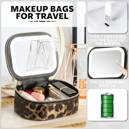 Leopard Print Makeup Box, Home Waterproof Makeup Artist Makeup Box, High-end Light Luxury Makeup Box with Mirror and Light